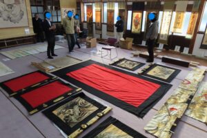 宮津阪急ビルでの講演会終了後、テレビ大阪 特別顧問(元社長) 田中信行さんに桜山神社のお宝の虫干しを見学頂きました。