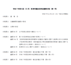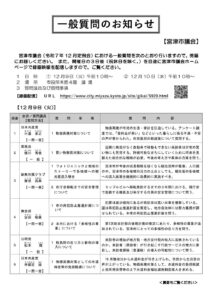 一般質問は12月9日(火)・10日(水)に行われ、 私は12月10日(水)に登壇予定です。