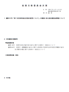 12月定例会の議案は全7件で、内訳は人事1件・その他1件・条例2件・補正予算3件です。